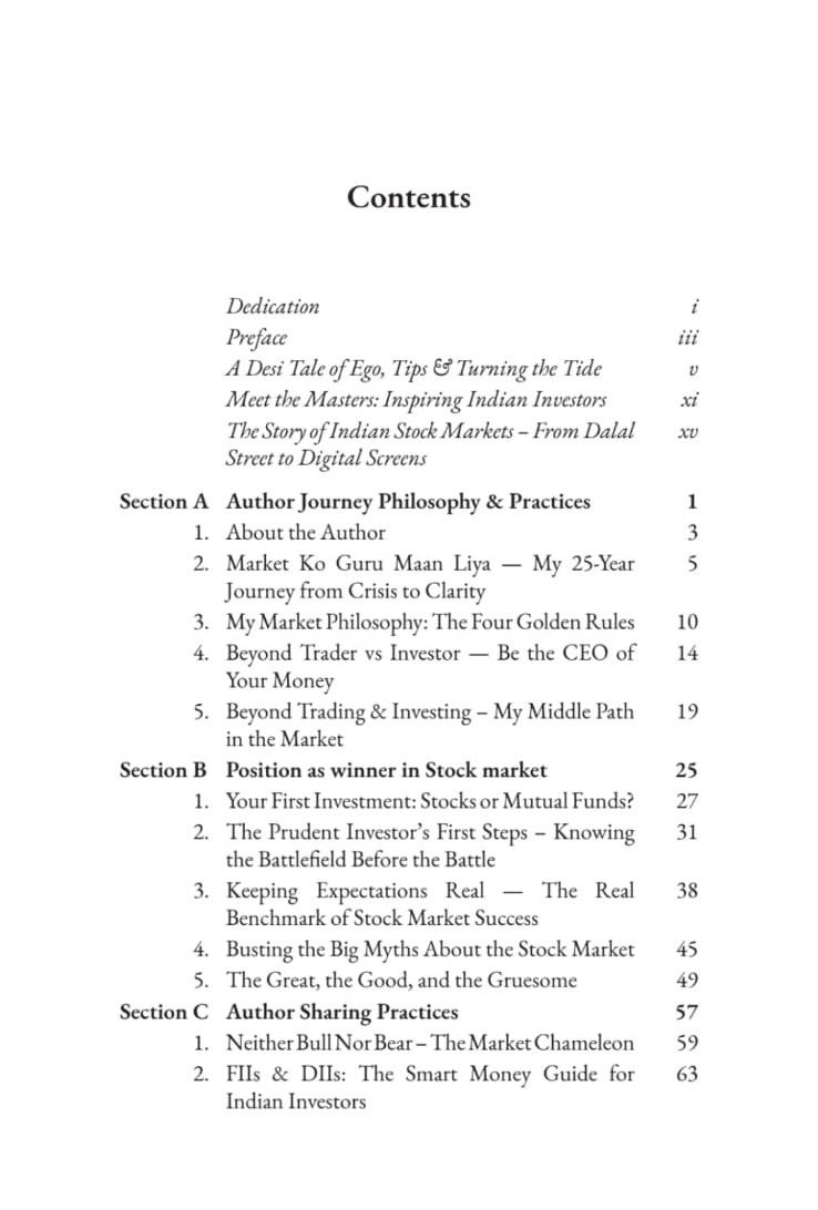 Through relatable examples drawn from Indian market behaviour, the author decodes how emotions hijack rational thinking and how discipline, patience, and process quietly outperform excitement and speculation.
